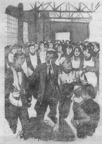 日本帝国主义投降那天,我们上工时,看到工厂门口贴着停工的布告。工人们愈聚愈多,三三两两站在厂门口说:“停工也要工资!”有些工人开始为停工后的生活发愁。