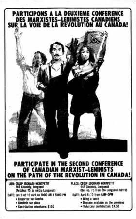 In the autumn of 1975, two of these groups – the Cellue militante ouvriere and the Cellule ouvriere revolutionnaire – joined with the MREQ to form the Canadian Communist League (Marxist-Leninist) (CCL (M-L) (known hereafter as the League), the other leading group in the second wave of Canadian anti-revisionism.