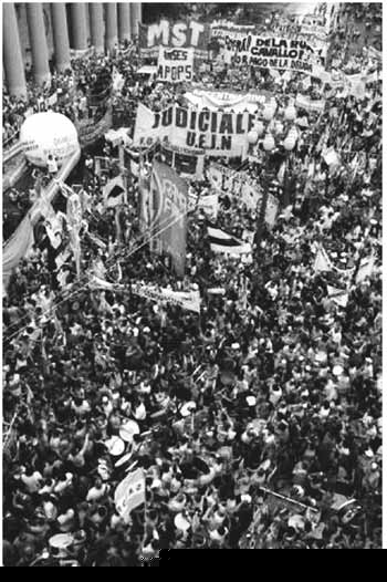 Nothing has been resolved, and when they tried to impose the most Draconian measures against the people they were defeated; because today at this rally we are going to ratify a concept that we have developed in our press: the massacre at Avellaneda Station and Pueyrredón Bridge was, as in the case of Cutral Co, of La Matanza, of Mosconi, of Tierra del Fuego, a premeditated attempt at crushing with blood and fire the picketers movement in order to provoke an ebb in the popular movement. It gives eternal honor to the Picketers Bloc as a whole as well as to each of the organizations which form part of it, and to those that act in common with the Bloc I am referring to the MIJD, to Barrios de Piethat they reacted in the face of the slaughter with the gigantic demonstration of June 27th, which obliged Duhalde to retreat totally from his plans for repression. The failure of this political plan of the Argentine national bourgeoisie, to escape the crisis and to transfer it entirely into the hands of the workers is so extraordinary that not only has Perez Companc given in, and very soon the cement works pertaining to Amalita [Fortebat] will also be on the rocks, but also that in a country where the currency has been devalued by 80%, that is, where for each dollar exchanged for 1 peso in the past you now get 3.60 pesos; in a country like that exports are falling; they have 3.6 times the incentive to export that they had under De la Rúa and the exports are falling, and they fall because the world capitalist market is saturated, and they fall because the Argentine banking system is bankrupt and nobody finances exports. Not even the exports have risen with an 80% devaluation of the currency! There could not be a bigger failure, and the consequences of this failure can be seen in the sharpening of the peoples struggle. In order to alleviate the situation Duhalde ordered by decree a 100 pesos increase in wages for the workers of the private sector. The transport bosses have said that they are not going to pay this increase, alleging that they have not had any increase in fares. The UTA (Argentine Transport Union) has promised that if by next week, on pay-day on the 5th of the month they do not get the 100 pesos increase, not a single bus or subway train will circulate in all of the Argentine Republic. There is a wave of lay-offs with threats, with mob-style procedures, in Telefónica Argentina; already 800 brothers and sisters are affected, and this is done with the progressive senator, a follower of Carrió, Vilma Ibarra, as operator, together with the Government of the City. But the telephone workers are going to resist these lay-offs with the general occupation of telephone offices and buildings. The outcome of the bank crisis is likely to create the laying off of 60,000 of the 90,000 now working in the financial system. The road paved by the occupied plants and factories, clinics, laboratories, food factories, printing shops, clothes factories shows the way for the banking clerks: the general occupation of the banks in order to place them at the service of the workers movement and in order to really offer a solution really favorable for the working masses. And lastly we have a strong, vigorous, combative movement of the Metrovías (subway) workers for the reduction of the work day to six hours. What has this regime achieved? Has it resolved the economic crisis? What has imperialism been able to achieve? Has it been able to limit it behind Argentine borders? What has Peronism achieved? Has it been able to contain the workers? What have they been able to achieve on a more general plane? To become more united amongst themselves? Are Reutemann, De la Sota, Rodríguez Saá, Kirchner, united? All of them wanting to send Menem to jail to see who they send to jail in the second round, and in the third round, until the last one sees if he can get his hands on the presidency. We are in the presence of a bankrupt regime. It is under these conditions that Duhalde has called for elections in March and for the swearing in of the new government in May, solely for the Presidency of the Republic. Phony elections, regimented, with open Peronist primaries in order to manipulate the Peronist candidate which afterwards the government will support any way they can so that that candidate is assured of winning the presidential elections. Elections designed to dissipate the movement of struggle of the workers towards electoral channels. Is this phony political plan capable of putting a stop to the popular rebellion? Is it capable of creating the unity of Peronism? Is it capable of building the unity of the national bourgeoisie? This political plan is built on a mountain of sand. Therefore, nothing in the political situation justifies embarking on this phony, anti-worker, anti-revolutionary, anti- picketers plan of the national government, supported by all the political parties without exception. The Workers Party rejects this political plan and calls for it to be combated, destroyed, for Duhalde to be ousted, for a free and sovereign Constituent Assembly. Constituent Assembly holding power With what position are we to oppose Duhaldes phony plan? With the position of deepening the popular rebellion, throwing out the government, and for the calling of a sovereign Constituent Assembly. We oppose the phony bosses democracy of the government with a radical democratic solution. And why do we do so? Because if Duhalde says phony elections, and we say workers government as an alternative, a great part of the population still the majority, enemy of the phony electionswill resign itself to phony elections because it is not prepared yet for a workers government. If Duhalde says phony election and the PO says Constituent Assembly, the population would prefer between these two options, Constituent Assembly. If Kirchner comes along and says phony elections, but with renovation of all elected offices, and the PO says workers government