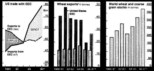 This is where everybody starts playing dirty, while claiming a monopoly of crystal virtue. In mid-1985 Washington announced an “Export Enhancement Program” to subsidise exports to whatever third markets the EEC exported to. Since then 655 million dollars have been spent in the campaign to beat Europe.