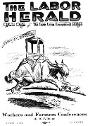 The Labor Herald was the official organ of the Trade Union Educational League (TUEL). Established by William Z. Foster in 1920 as a means of uniting radicals within various trade unions for a common plan of action. The group was subsidized by the Communist International via the Communist Party of America from 1922. The organization did not collect membership dues but instead ostensibly sought to both fund itself and to spread its ideas through the sale of pamphlets (a complete collection) and circulation of a monthly magazine. After several years of initial success, the group was marginalized by the unions of the American Federation of Labor, which objected to its strategy of “boring from within” existing unions in order to depose sitting union leaderships.
